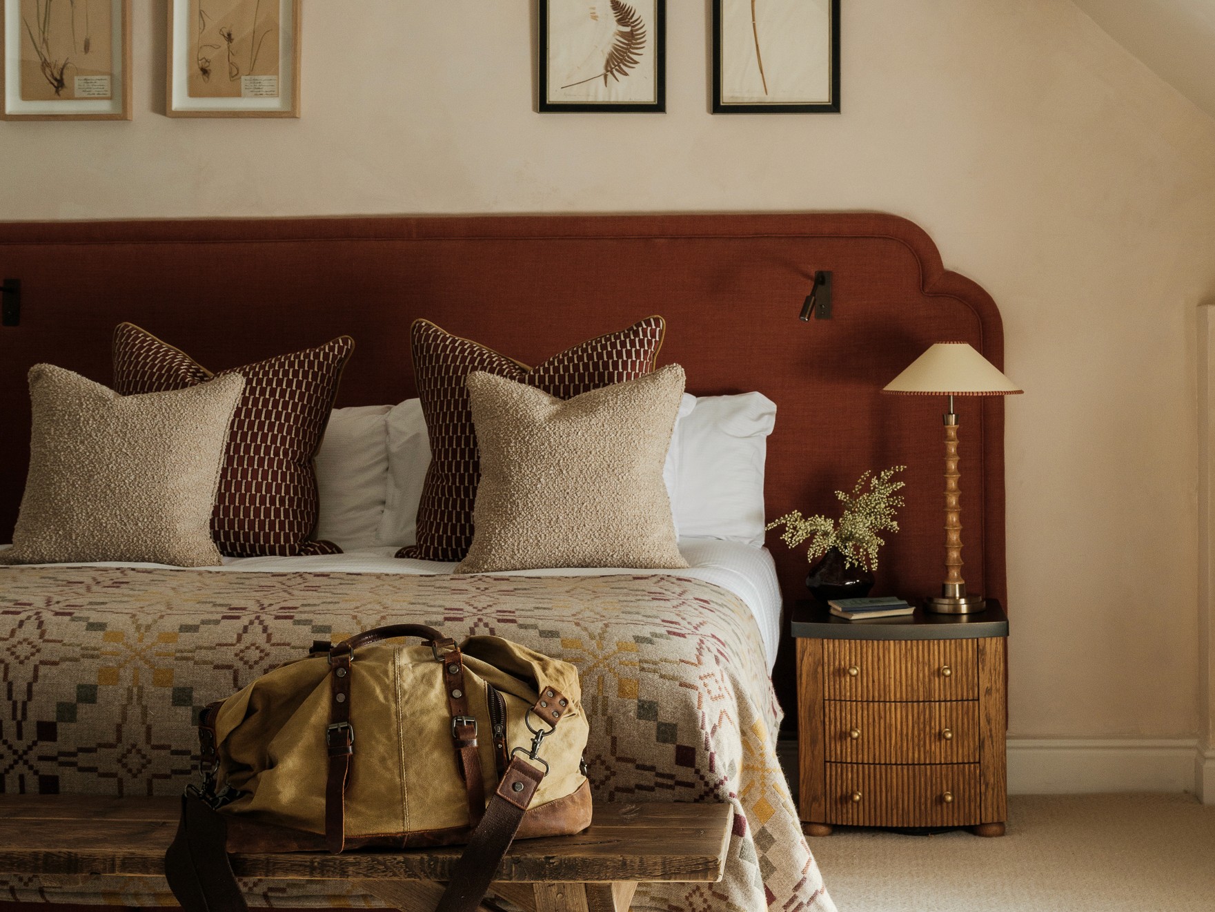 An earthy colour palette, tactile soft furnishings, reclaimed Welsh Slate, traditional panelling, and limewashed paints provide a contemporary, rustic look and feel.